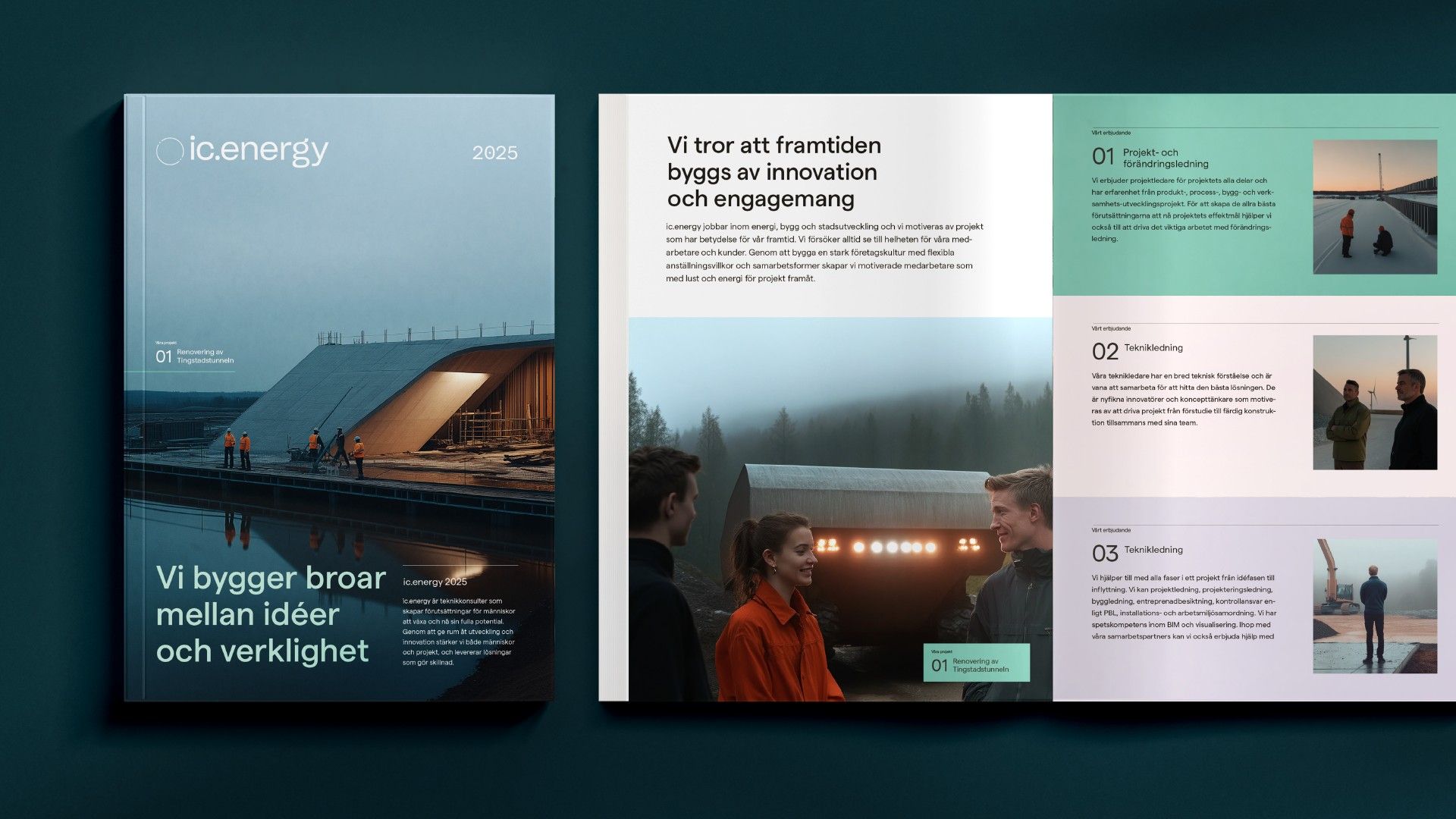 Den nya grafiska identiteten är ett uttryck för denna utveckling. Genom en skarpare typografi och ett renare formspråk skapas en visuell närvaro som förmedlar samma stabilitet och fokus som präglar ic.energys arbete.